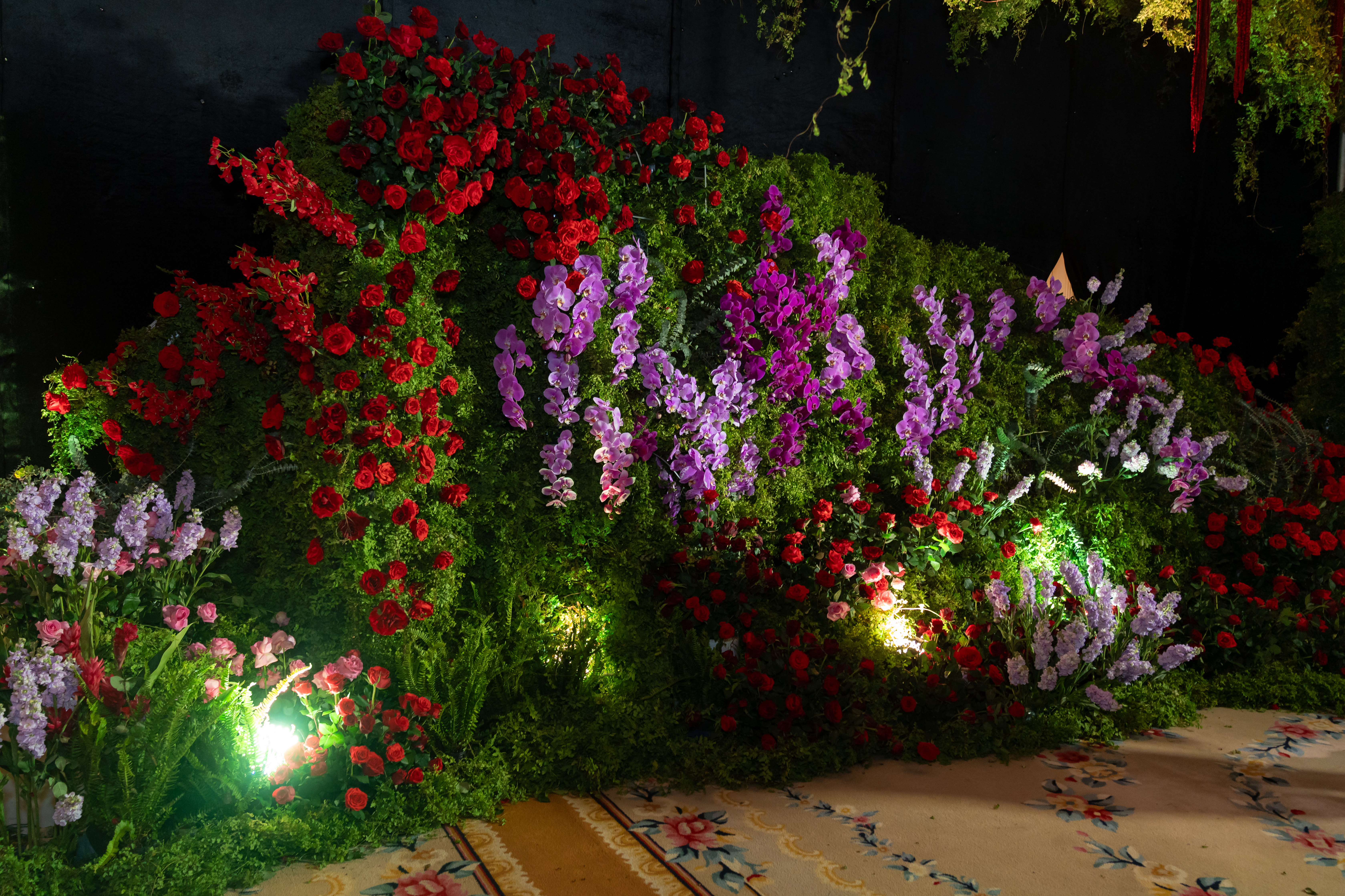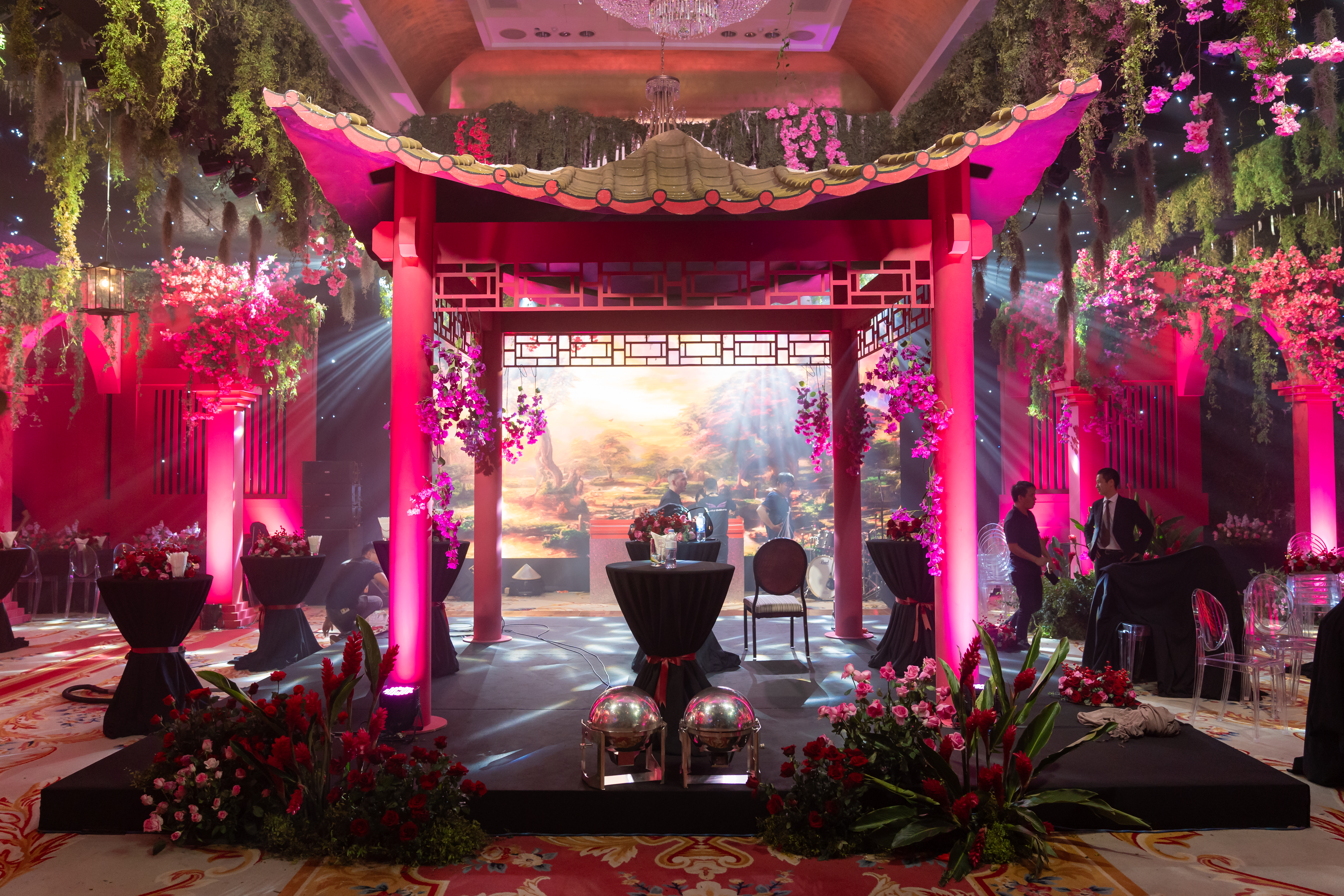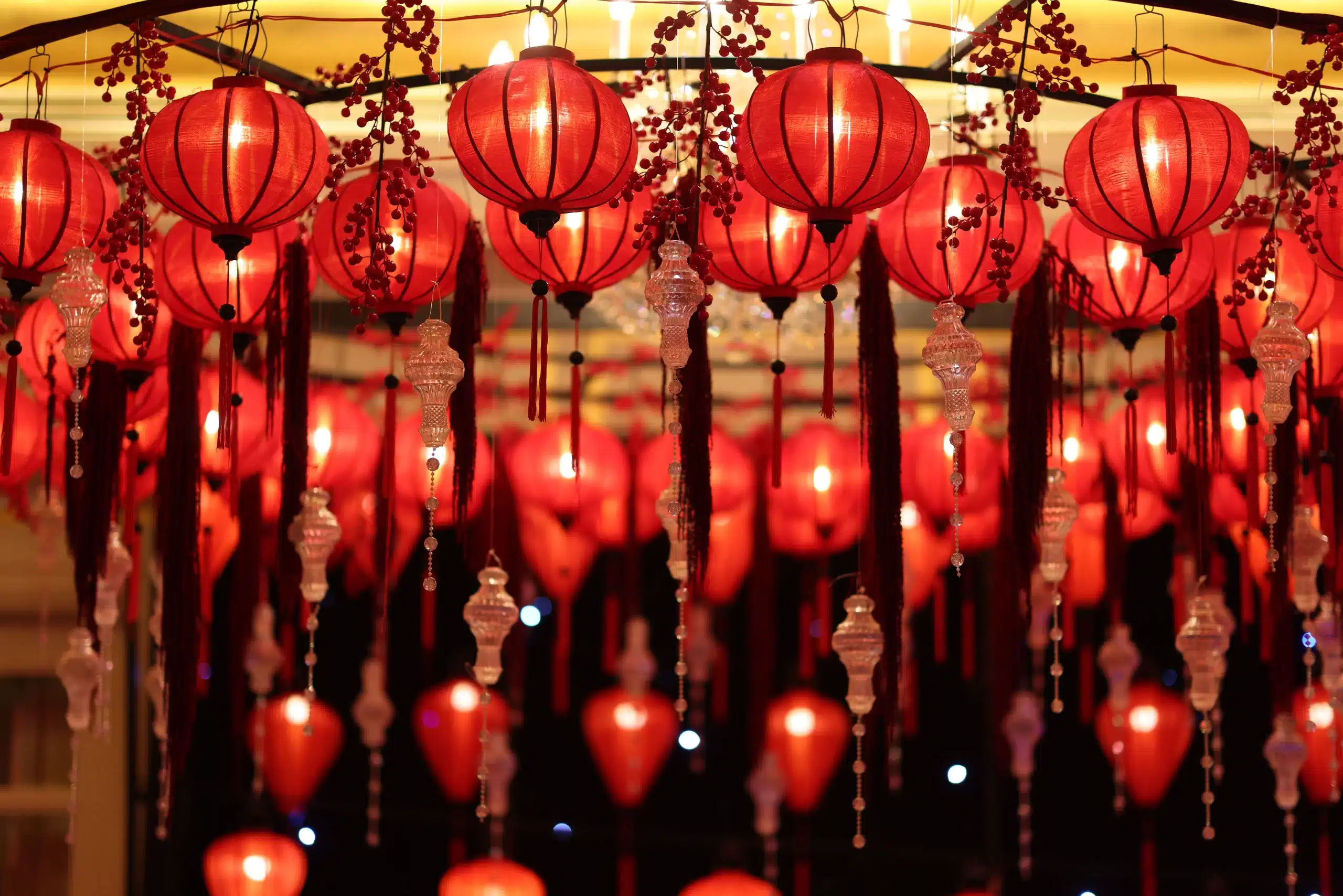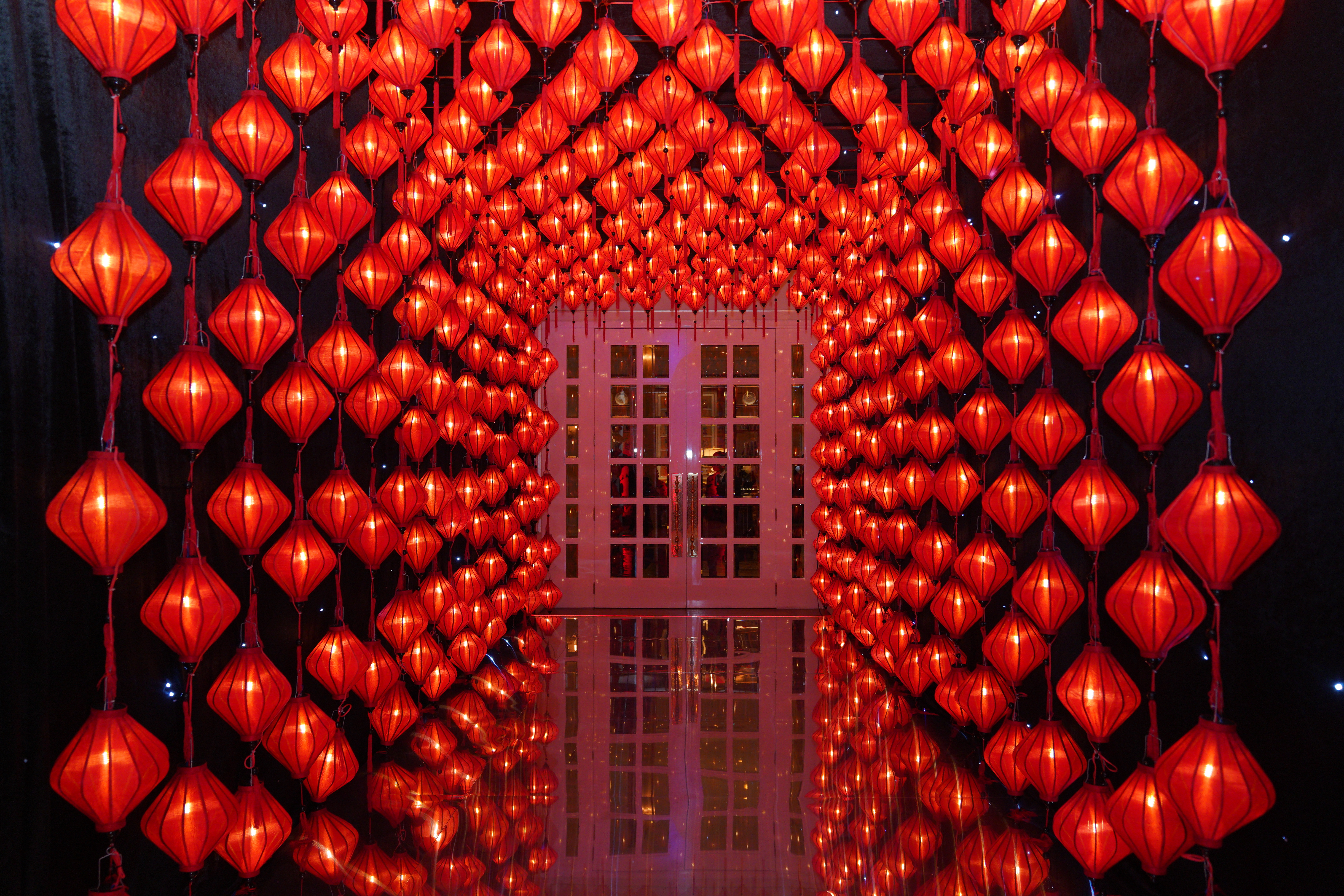 Above them, more than 5,000 hand-selected red Chinese lanterns filled the ceiling, each individually suspended to form a glowing sky of crimson light.