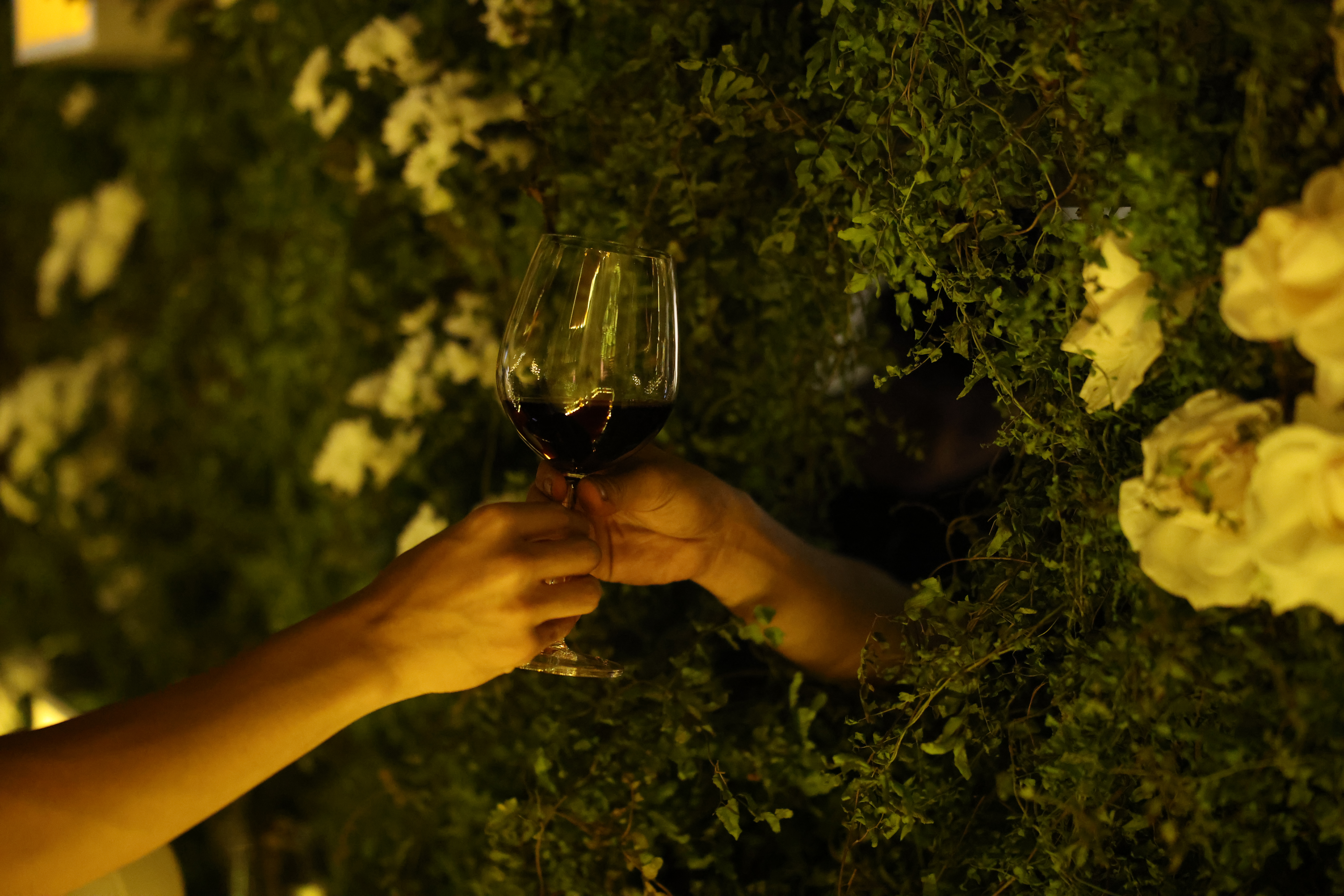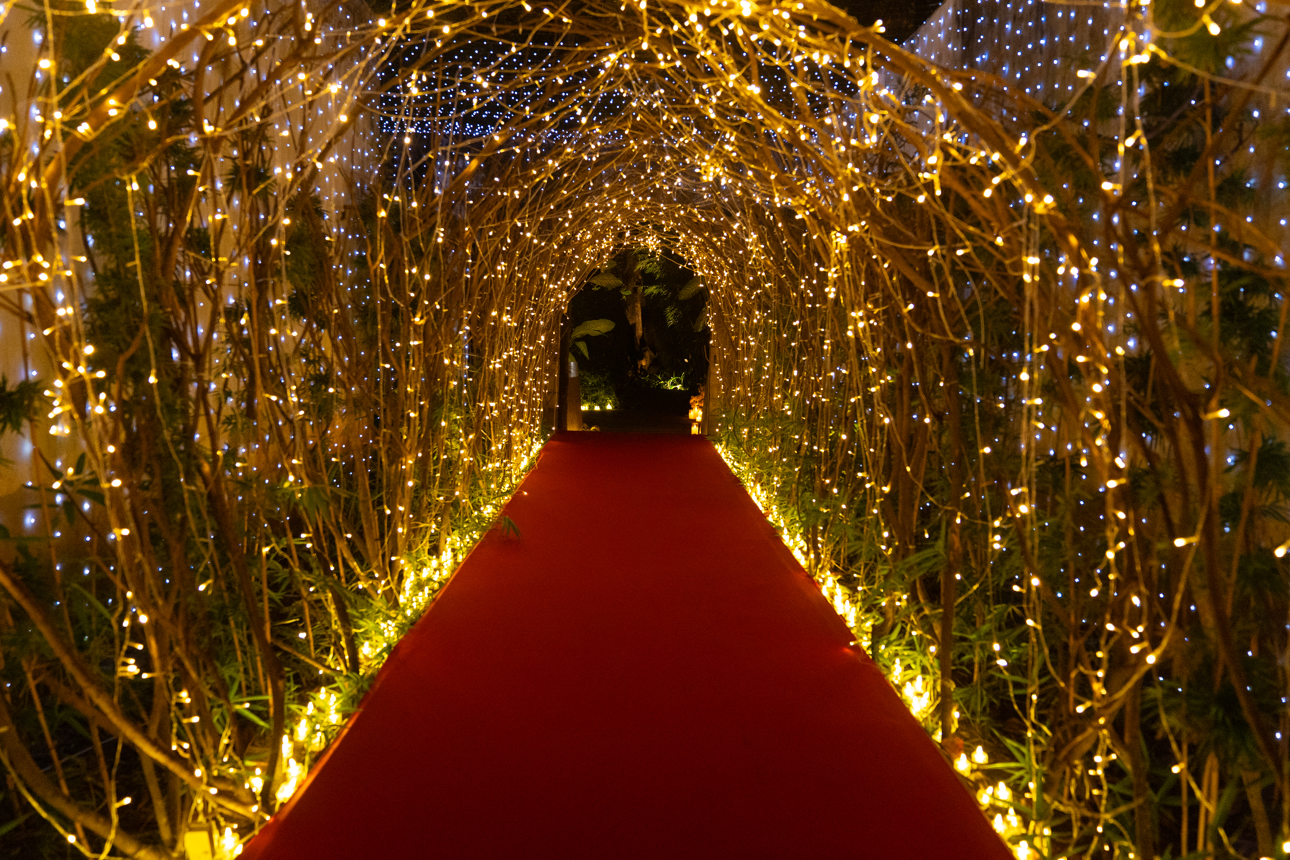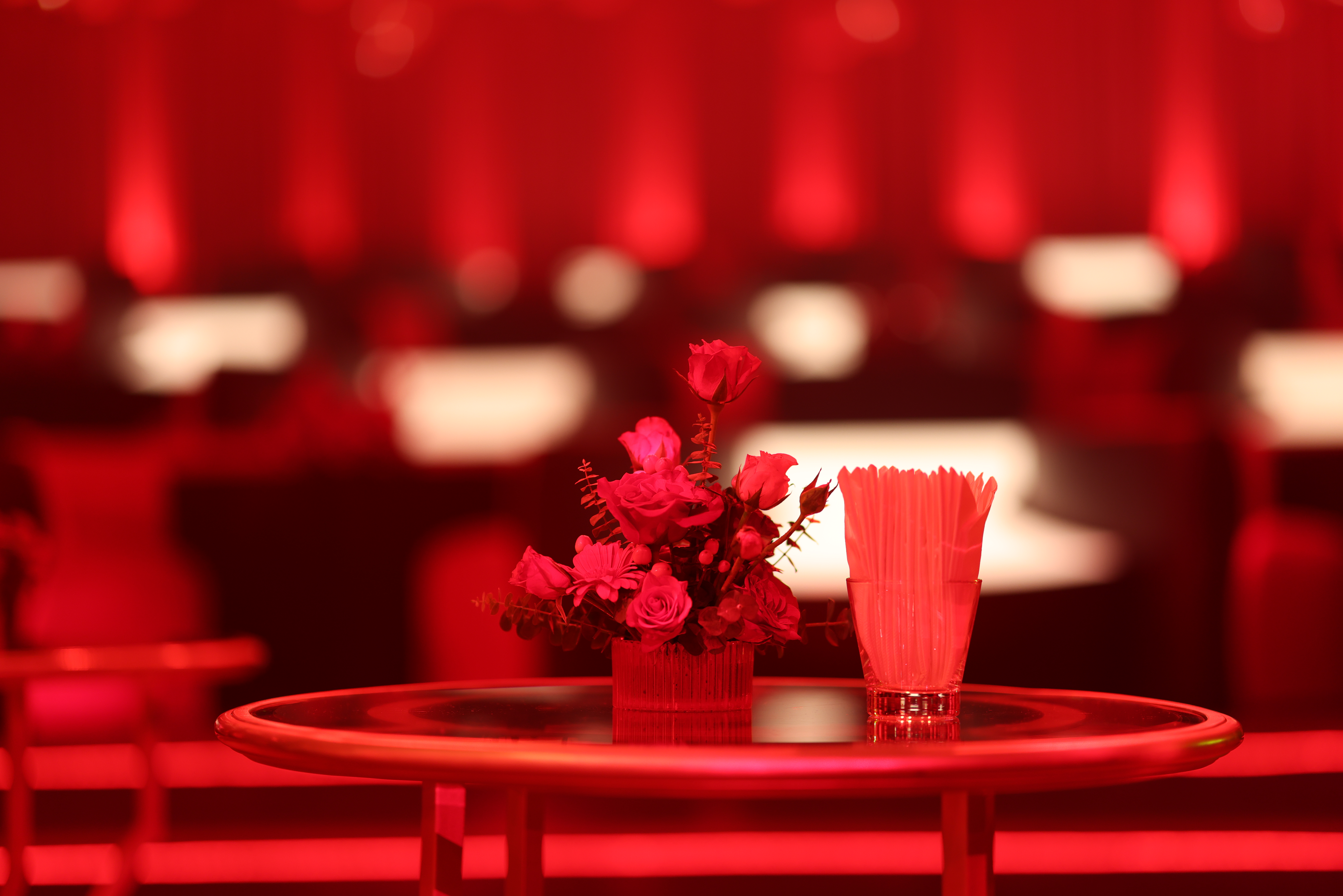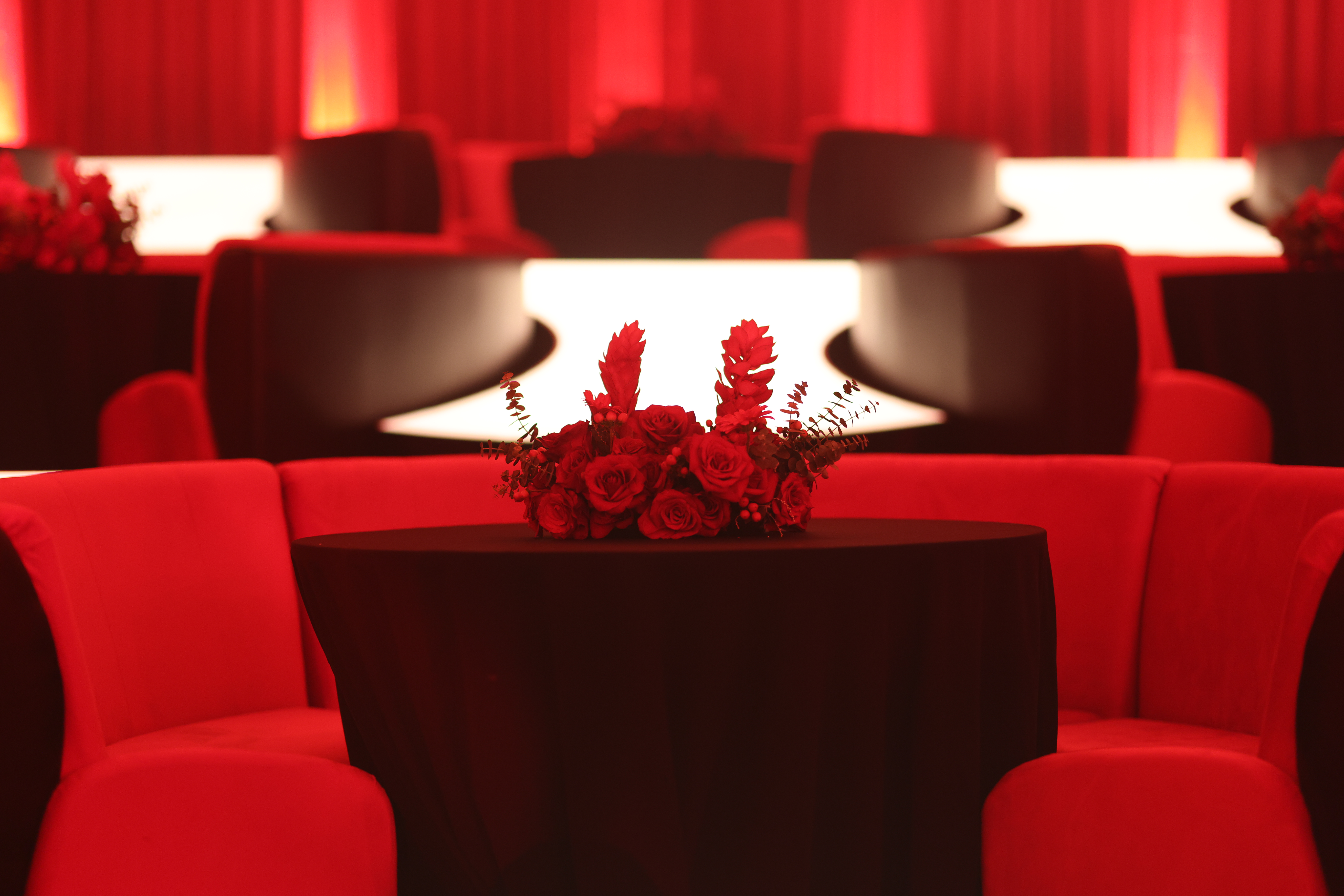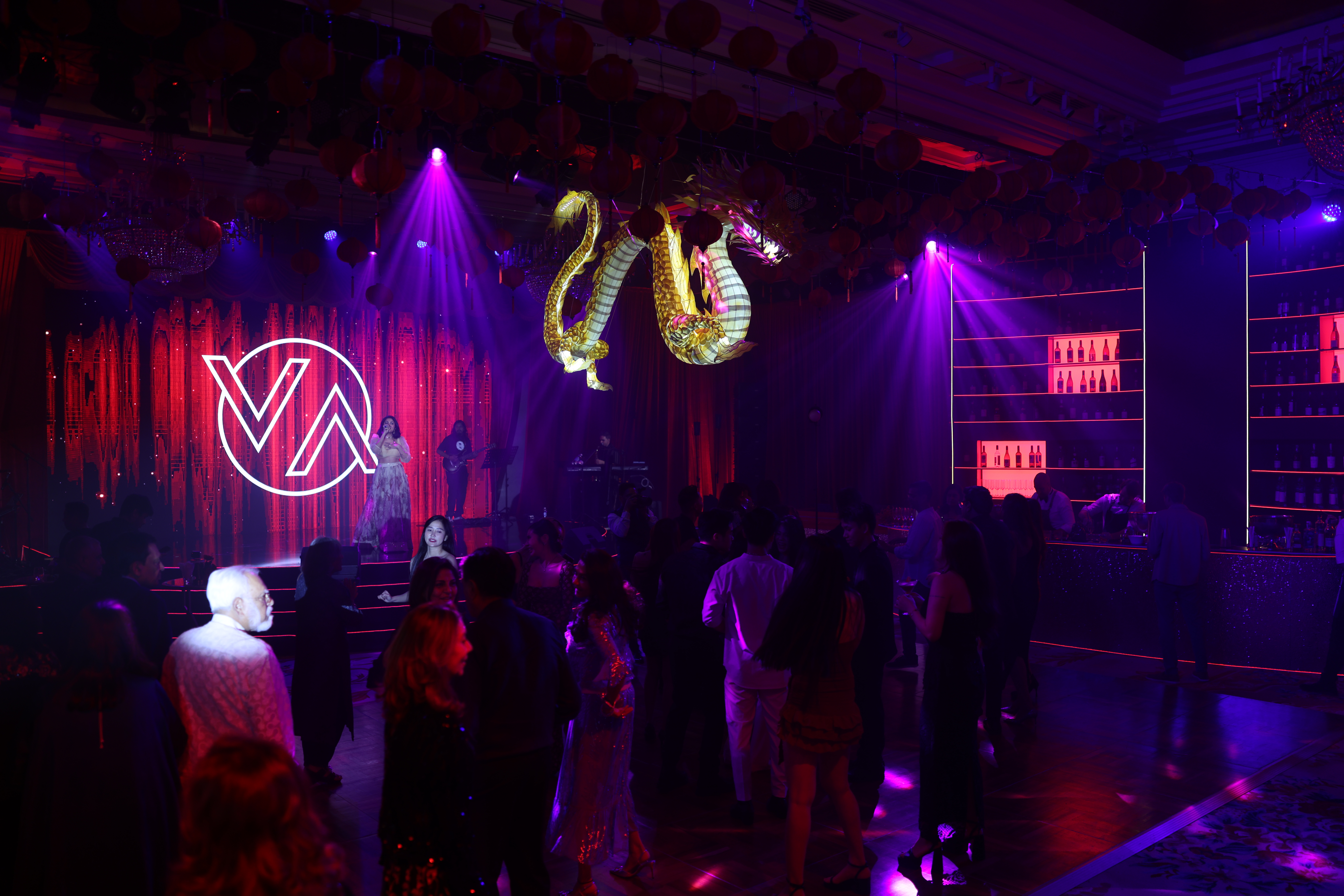 Above them, more than 5,000 hand-selected red Chinese lanterns filled the ceiling, each individually suspended to form a glowing sky of crimson light.